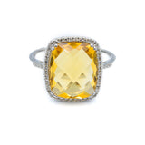 Striking and bold, the Blue Topaz Halo Ring dazzles with a 3.65 carat cushion-cut blue topaz, encircled by a delicate halo of 0.06 carats of diamonds. Crafted in 14K yellow gold with a beaded band, this vibrant ring radiates brilliance and charm. Also available in a lemon quartz version.