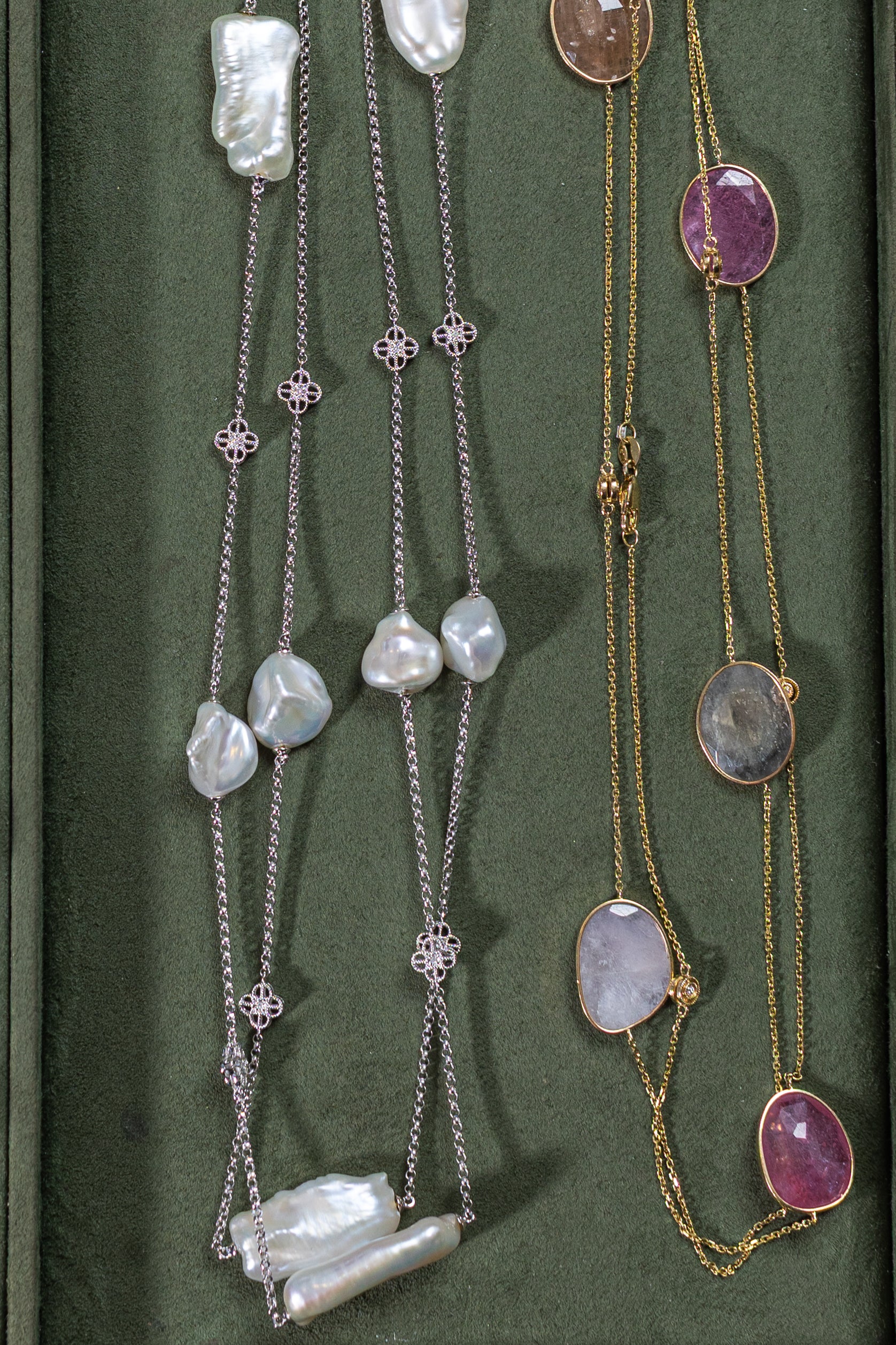 Sophisticated and striking, the Baroque South Sea Pearl Necklace is designed to flatter every body type with its graceful length and organic beauty. Featuring 85 carats of luminous baroque South Sea pearls, accented by 0.04 carats of pavé-set diamonds in 14K white gold, this piece embodies timeless luxury. Perfect for both everyday refinement and evening glamour.