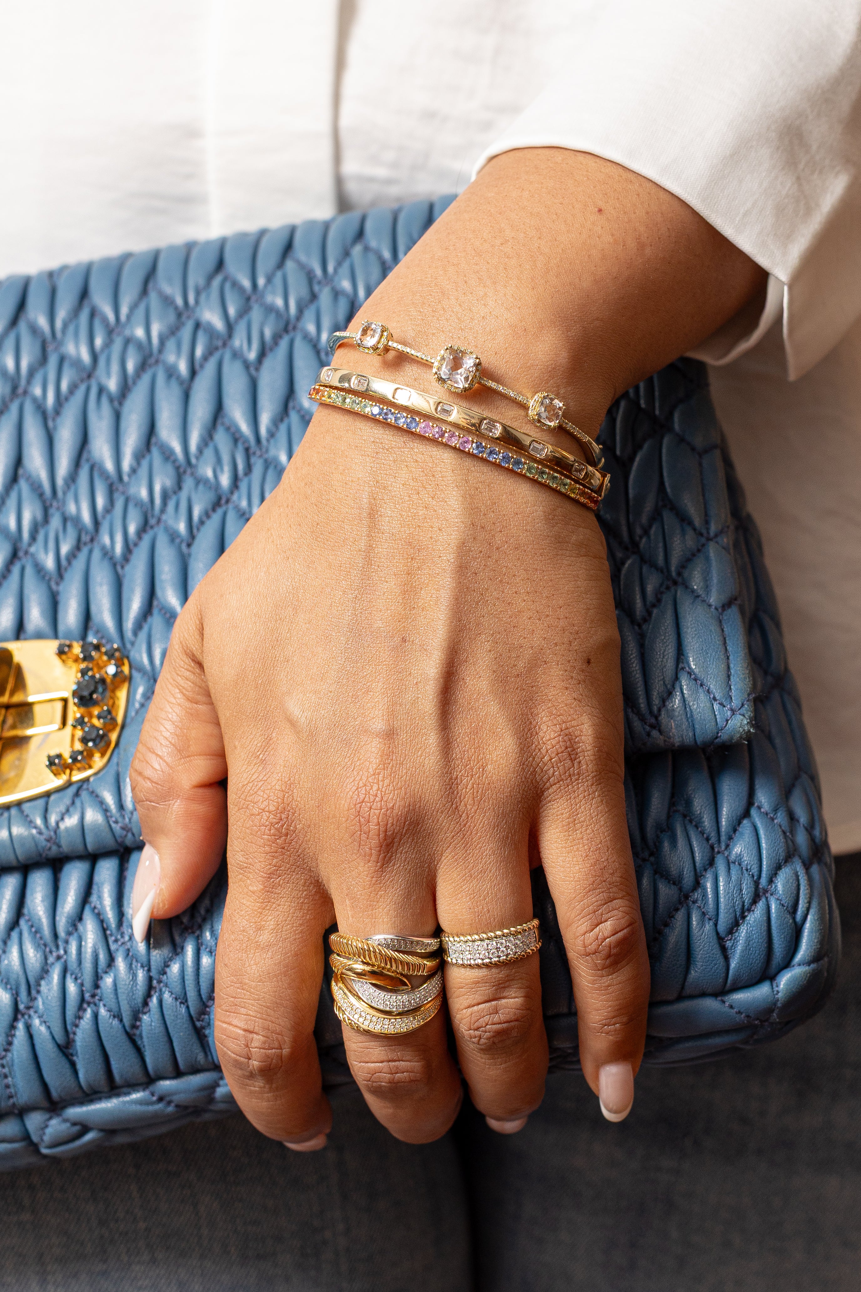 A masterpiece of movement and light, the Diamond Swirl Ring shimmers with 0.80 carats of GH SI diamonds. Crafted in rich 2-tone 18K yellow and white gold and interwoven with ribbons of pavé-set natural white diamonds—each strand textured, polished, or sculpted to reflect light in a unique way. The result is a multidimensional silhouette that feels both architectural and effortlessly glamorous.