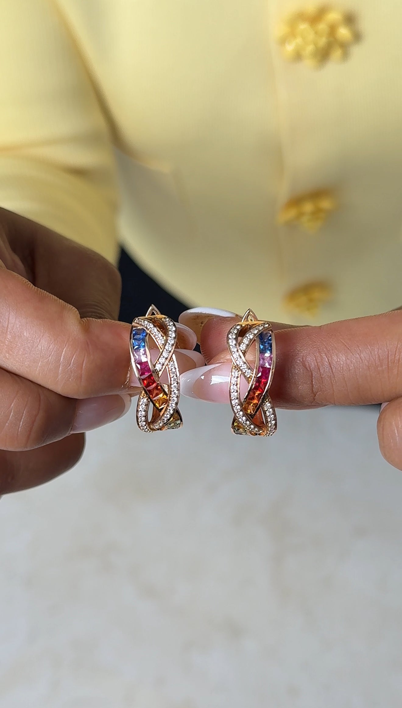 An ode to illumination and individuality. With intertwining pavé diamonds and seamlessly set princess-cut sapphires, these earrings transcend convention, embodying bold sophistication and refined luxury.
