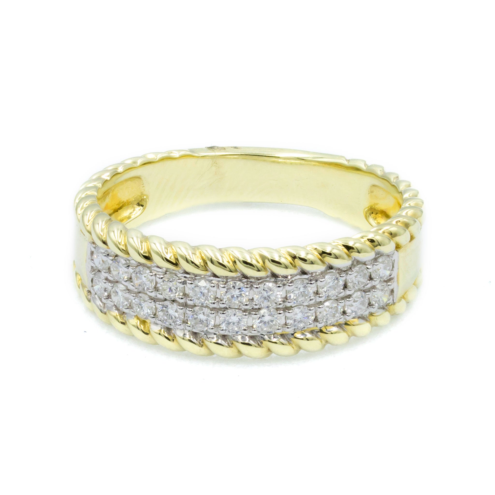 A timeless classic with a twist, the Pave Diamond Rope Ring is crafted in 14K yellow gold and set with 0.39 carats of GH SI diamonds. Framed by elegant rope detailing, this band pairs modern sparkle with a classic charm—beautiful worn solo or stacked.