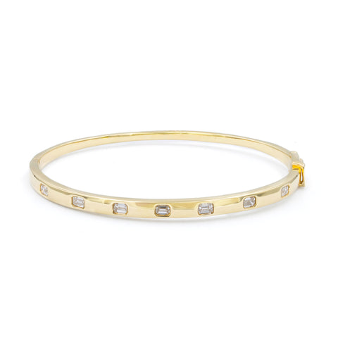 Timeless and versatile, the Classic Bezel Bangle is designed to elevate your everyday style. Crafted in 14K yellow gold, it features seven bezel-set natural diamonds totaling 1.04 carats in GH...