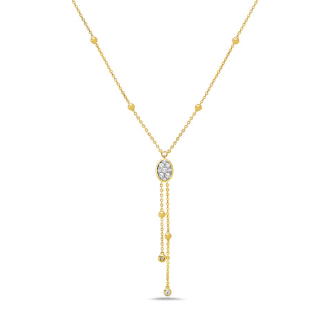 Elegant and fluid, the Diamond Cascade Necklace brings together modern design and timeless refinement. Crafted in 14K yellow gold, this Y-style necklace features a luminous cluster of natural white diamonds...
