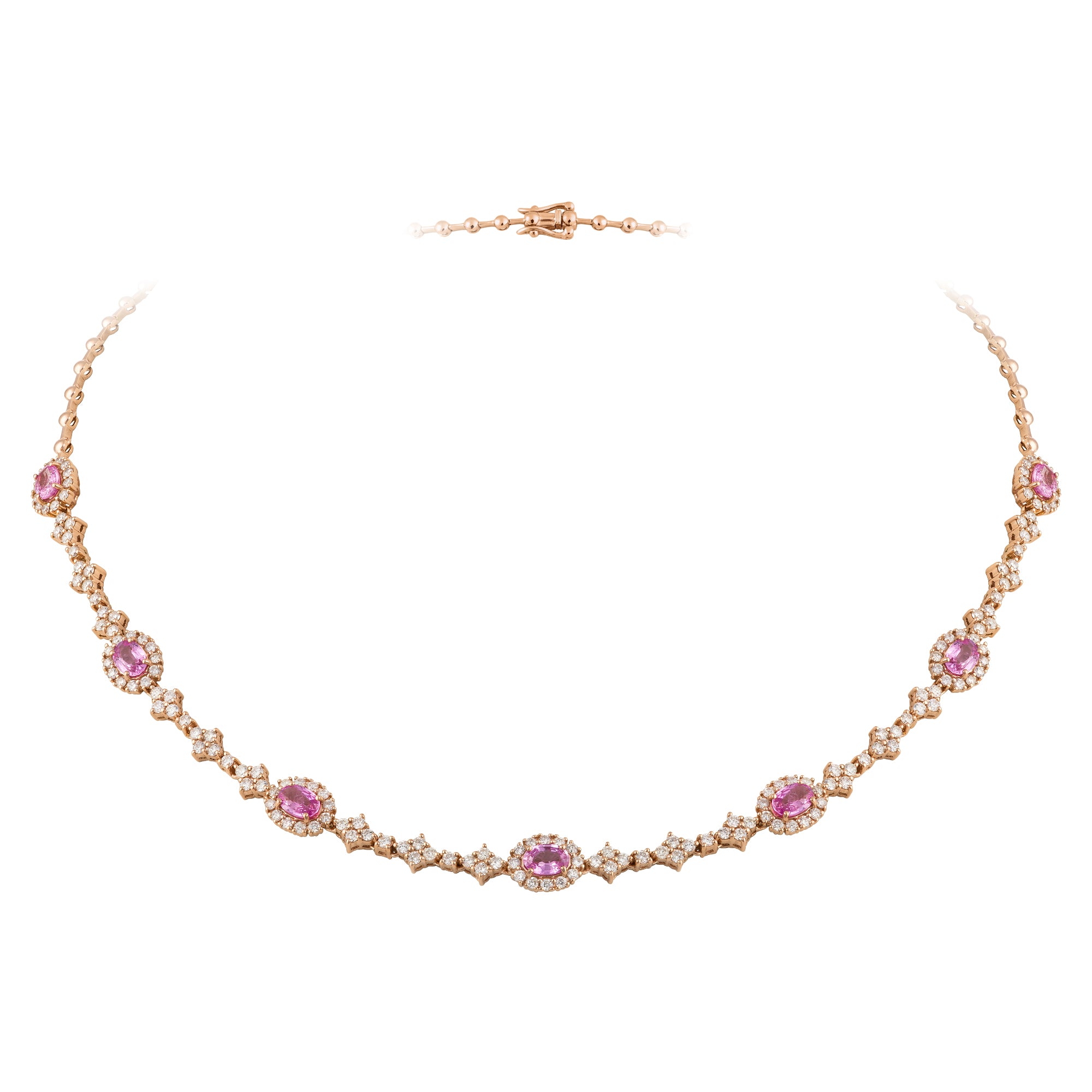 A statement of refined luxury, the Imperial Pink Necklace embodies timeless elegance with a fresh, feminine twist. This captivating design features vivid pink sapphires set in warm 18K rose gold, beautifully contrasted by the brilliance of round brilliant-cut diamonds that dance with the light.