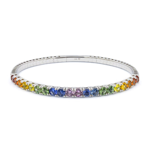 A vibrant reimagining of a timeless classic, the Rainbow Sapphire Flex Bangle infuses joyful color into a sleek and versatile design. Handcrafted in 14K white gold and set with 5.70...