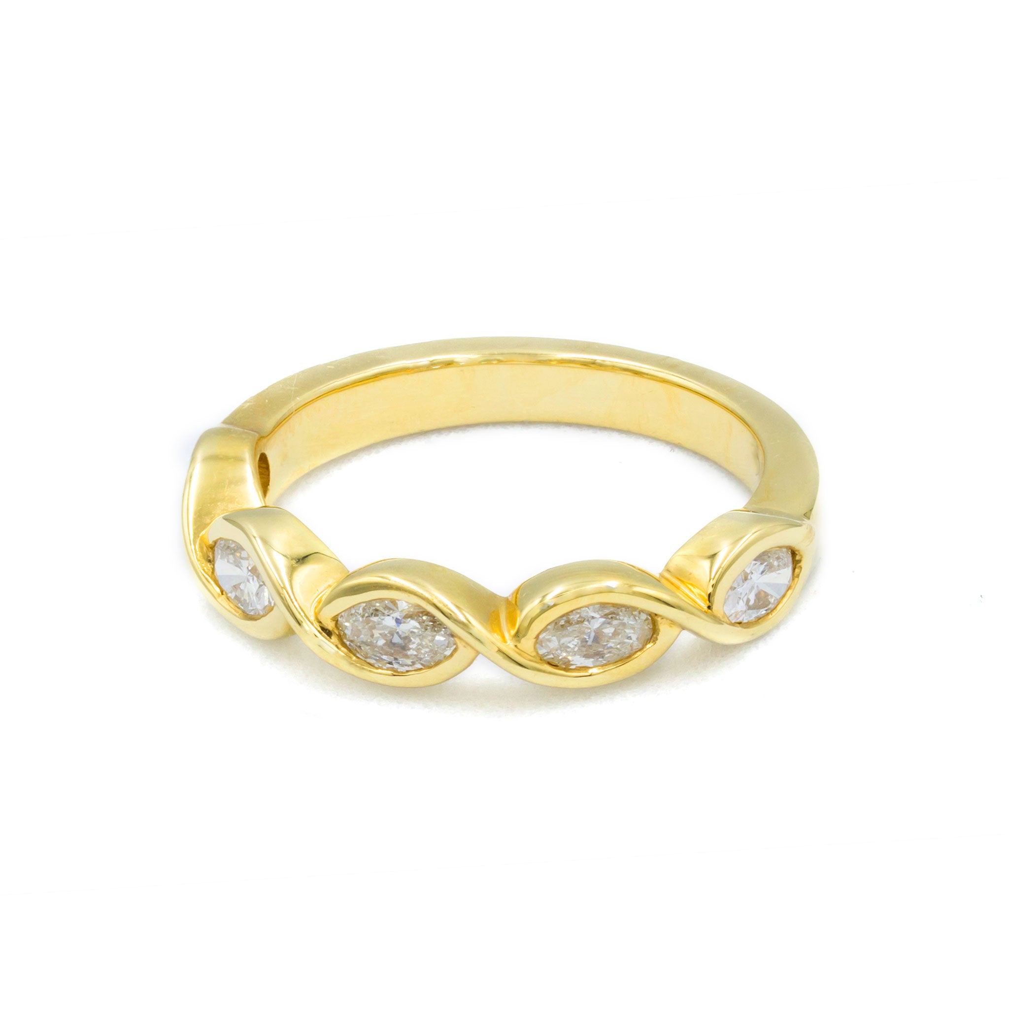 0.74 cts of bezel set marquise cut diamonds of GH SI quality