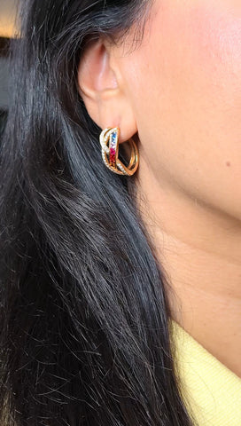 An ode to illumination and individuality. With intertwining pavé diamonds and seamlessly set princess-cut sapphires, these earrings transcend convention, embodying bold sophistication and refined luxury. Materials: Contains 72=0.63 cts of...